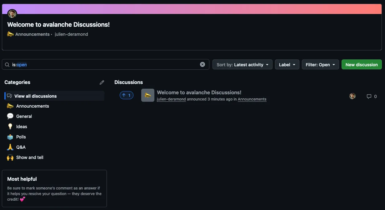 Remember, a successful Discussions page isn’t just about enabling the feature—it’s about actively engaging with your community, celebrating their contributions, and adapting the space as your project grows. Take this opportunity to strengthen connections and build trust within your community.